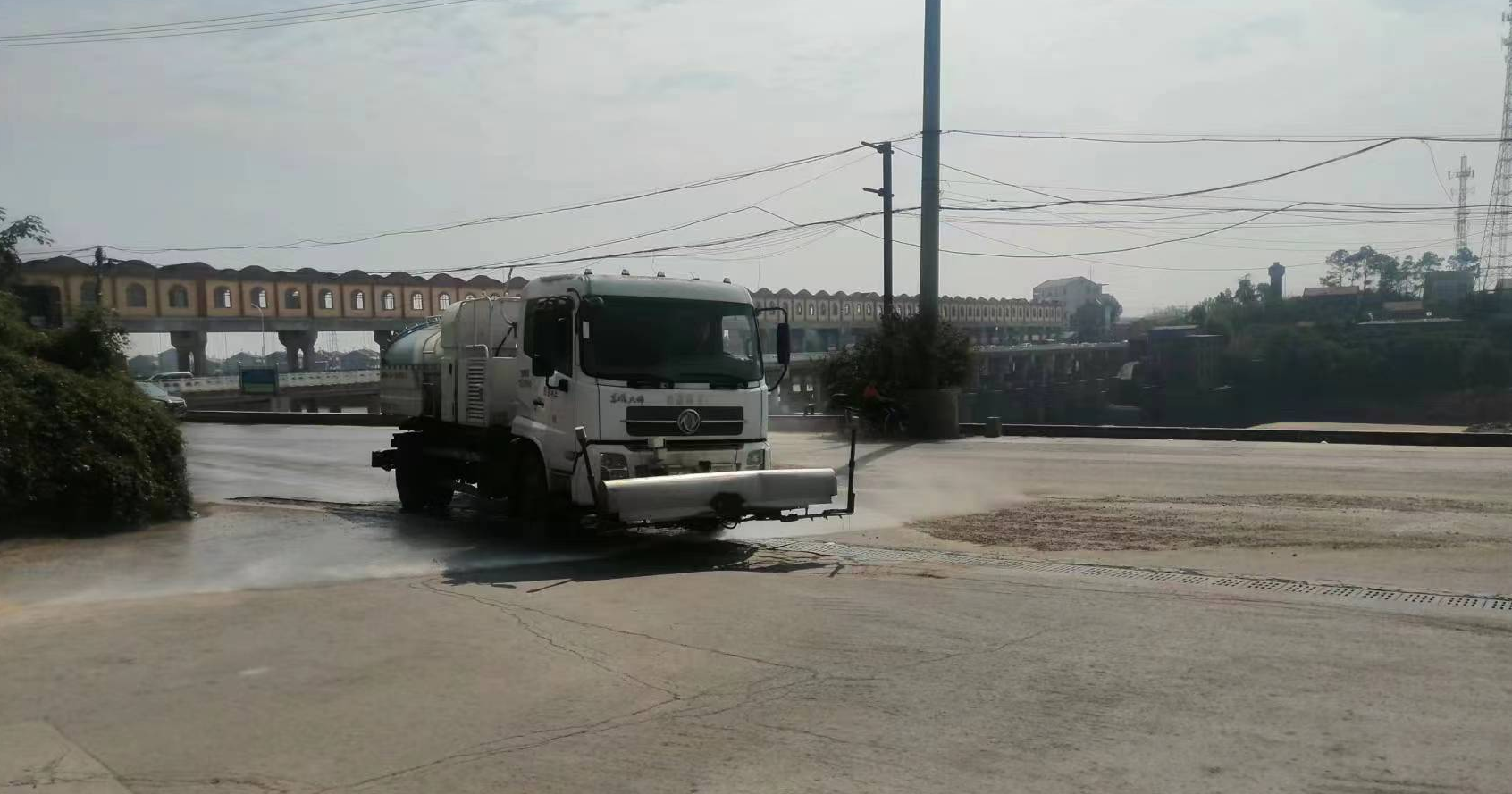 一是开展公共道路防尘措施。因新洲区政府委托的房屋建筑拆除清理施工单位一直在公司原厂区内施工,2022年4月起,我公司每天安排两名劳务工在汽渡路上(原中东磷业厂区大门到娲石水泥厂大门段公共路段)进行清扫,并租借洒水车不定期洒水压尘,防止车辆进出对周边居民造成影响。