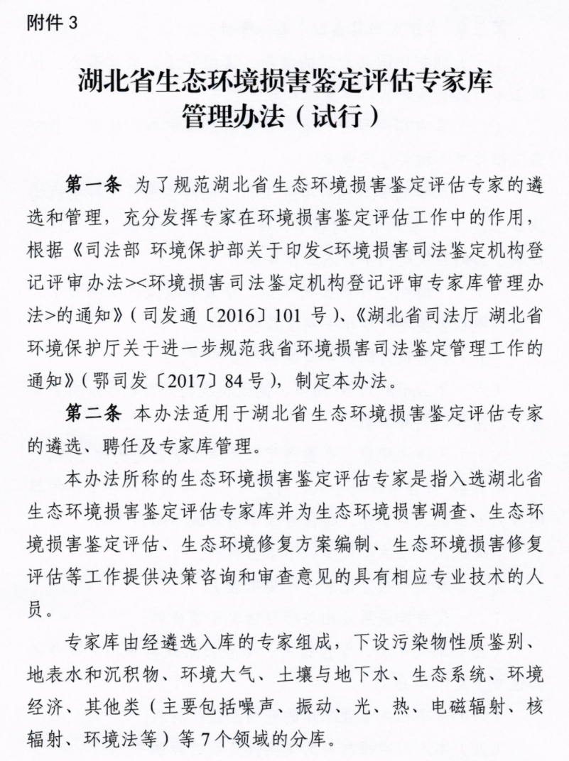 2017年,中央办公厅、国务院办公厅印发了《生态环境损害赔偿制度改革方案》后湖北省、武汉市也相继印发了《湖北省生态环境损害赔偿制度改革实施方案》《武汉市生态环境损害赔偿制度改革实施方案》等文件,对案件调查启动、鉴定评估、磋商、赔偿诉讼、生态环境修复、赔偿资金管理等方面都作出了明确规定。